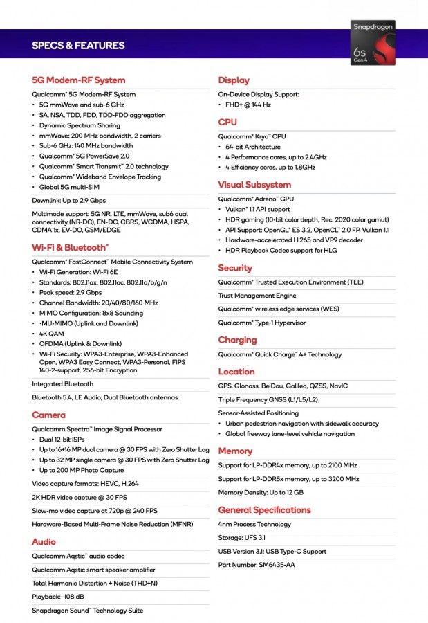 كشفت شركة كوالكوم النقاب عن أحدث معالجاتها من الفئة المتوسطة والذي يحمل الاسم Snapdragon 6s Gen 4.