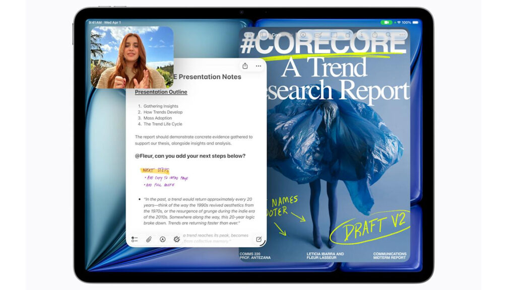 وهذا يعني أنّ iPad Air الجديد يدعم معيار Wi-Fi 7 لأول مرة، ويأتي الجهاز الآن بذاكرة وصول عشوائي (RAM) سعة 12 جيجابايت، مقارنةً بـ 8 جيجابايت في الطراز السابق.