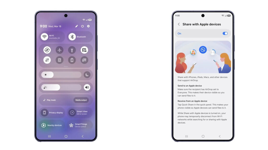 ابتداءً من الغد، 23 مارس، ستبدأ سامسونج بتوفير دعم AirDrop في كوريا، ومن المتوقع أن يتوسع الدعم لاحقًا ليشمل مناطق أخرى مثل أمريكا الشمالية وأوروبا وهونغ كونغ واليابان وأمريكا اللاتينية. وتؤكد سامسونج مجددًا أن المزيد من الأجهزة ستدعم AirDrop قريبًا.