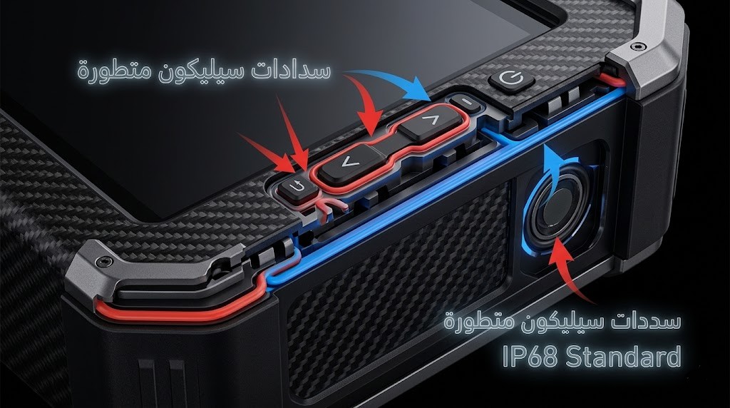 الأجهزة الحديثة يتم اختبارها وفق معايير عالمية مثل IP68 (المقاومة للماء والغبار). هذا يتطلب هندسة دقيقة في إغلاق المنافذ واستخدام سدادات “سيليكونية” متطورة تمنع تسرب الرطوبة حتى في الأجواء الاستوائية أو الممطرة.