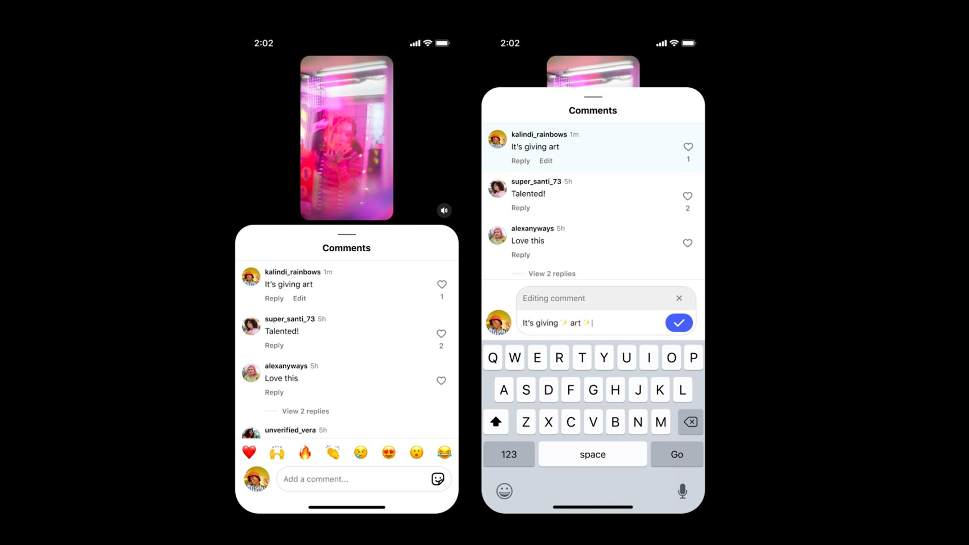 وتظهر التعليقات بأشكال متعددة على إنستغرام، بما في ذلك القصص (منذ عام 2024)، لذا يُعدّ توفير إمكانية تعديلها إضافة قيّمة.